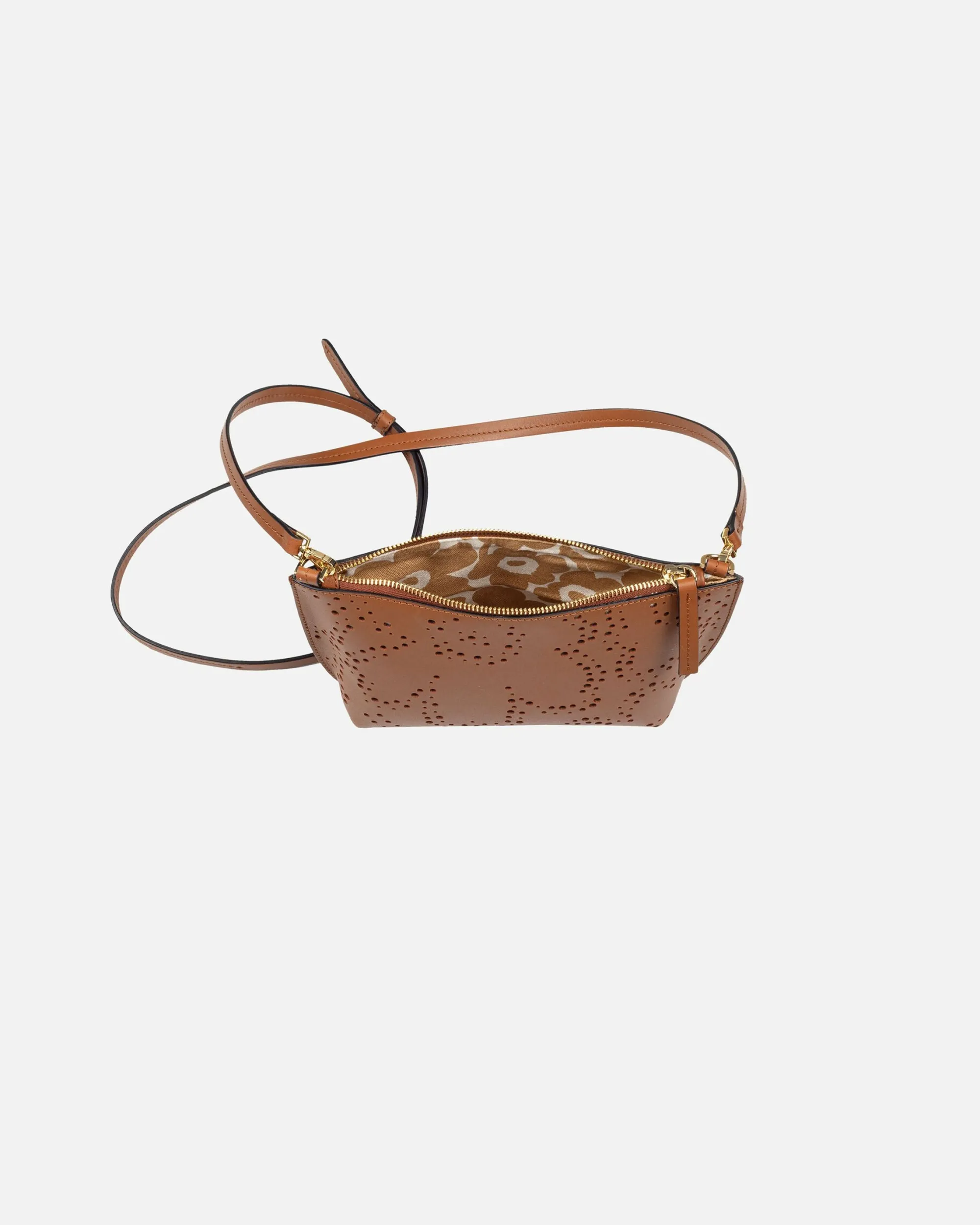 Imprint Crossbody -Olkalaukku On Valmistettu Jäljitettävästä Skandinaavisesta Nahasta Ja Siinä On Pienistä Rei’Istä Muodostuva, Pitsimäinen Unikko-Kuosi. Laukussa On Irrotettava Ja Säädettävä Olkahihna, Vetoketjukiinnitys Ja Yksi Vetoketjutasku Sisäpuolella. Sisävuori On Valmistettu Unikko-Kuosisesta Puuvillasta.