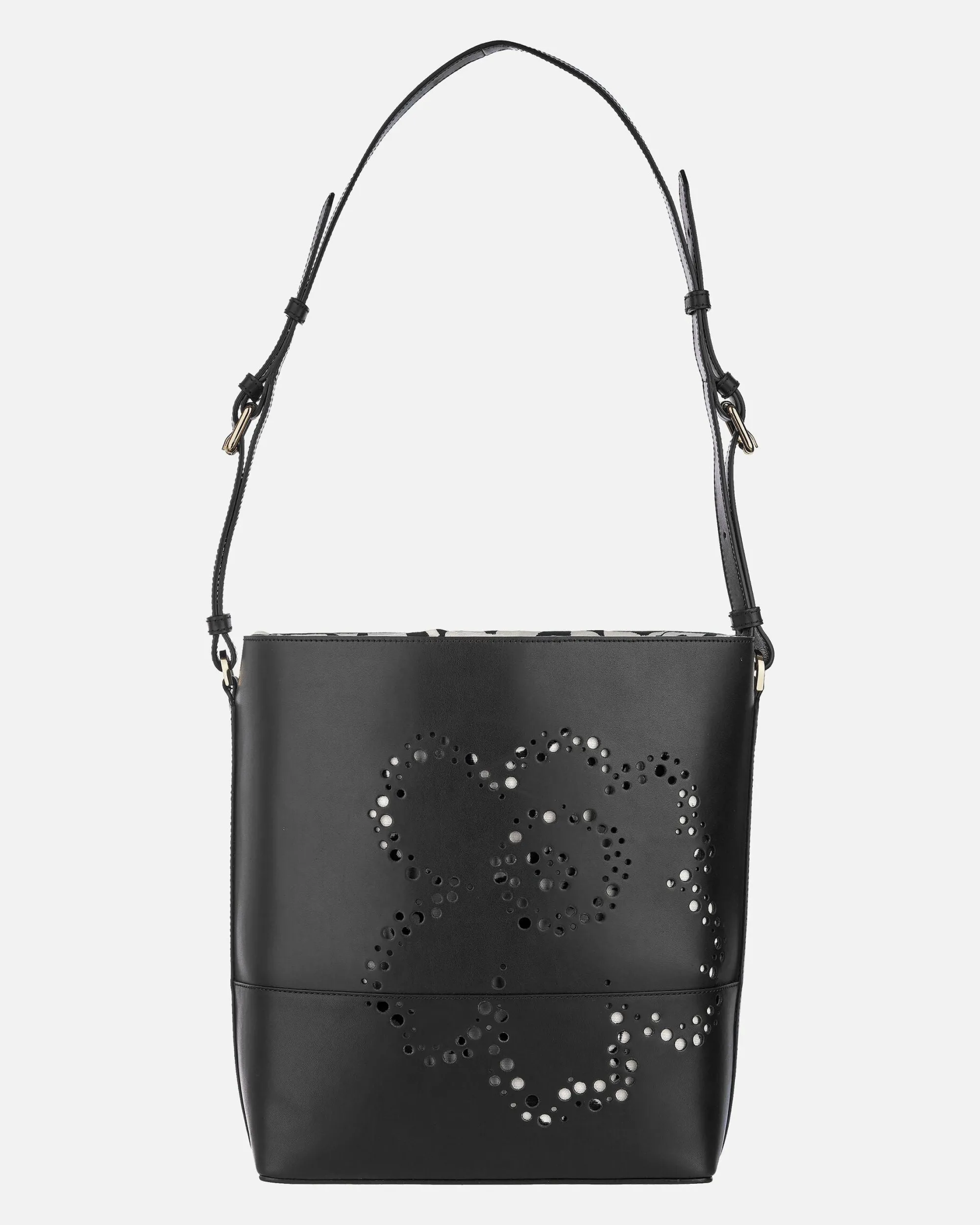 Imprint Tote Unikko -Laukku On Valmistettu Jäljitettävästä Skandinaavisesta Nahasta. Etupuolen Unikko-Kukka Muodostuu Pitsimäisesti Pienistä Rei’Istä. Laukussa On Säädettävä Olkahihna. Laukun Suuaukko Vedetään Kiinni Nahkahihnojen Avulla Ja Kiinnitetään Stopparilla. Laukussa On Yksi Sisätasku. Sisävuori On Valmistettu Unikko-Kuosisesta Puuvillasta. Marimekko-Logo On Kohokuvioitu Laukun Sivuihin Ja Pohjaan.