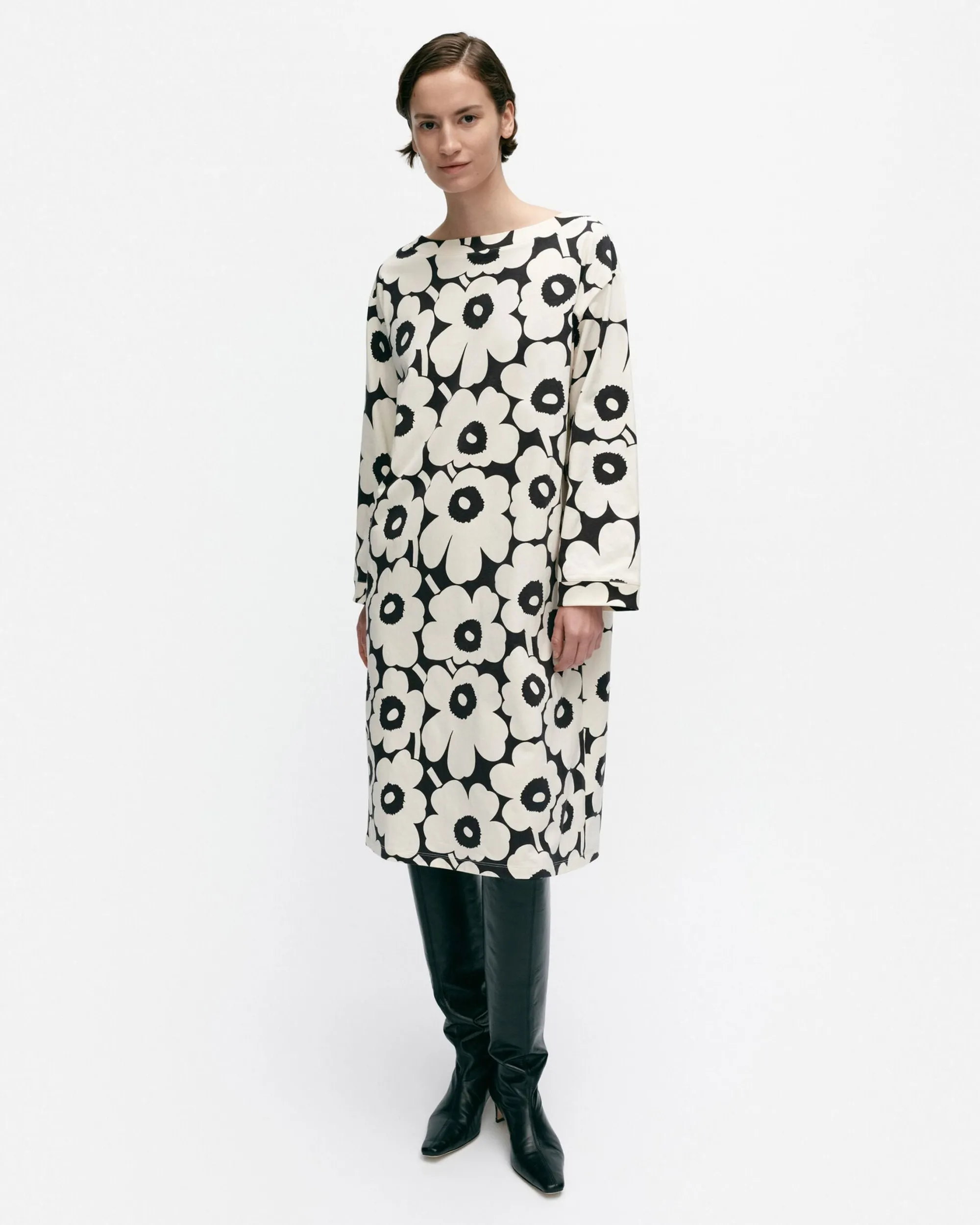 Maija Isola Loi Unikko-Kuvion, Kuviosuunnittelun Kansainvälisen Ikonin, Vuonna 1964. Marimekon Perustaja Armi Ratia Ajatteli, Ettei Kukkien Todellista Olemusta Ole Mahdollista Vangita Kuvioon. Tämän Vuoksi Marimekon Mallistoihin Ei Aiemmin Kukkia Kuulunut. Maija Isola Suunnittelikin Unikko-Kuvion Pikemminkin Abstraktiksi Tulkinnaksi Kuin Fotorealistiseksi Toisinnoksi Kukkateemasta. Tänä Päivänä Unikko On Vahva Ilon Ja Luovuuden Symboli Sekä Tärkeä Osa Marimekon Designidentiteettiä.Koko & Istuvuus