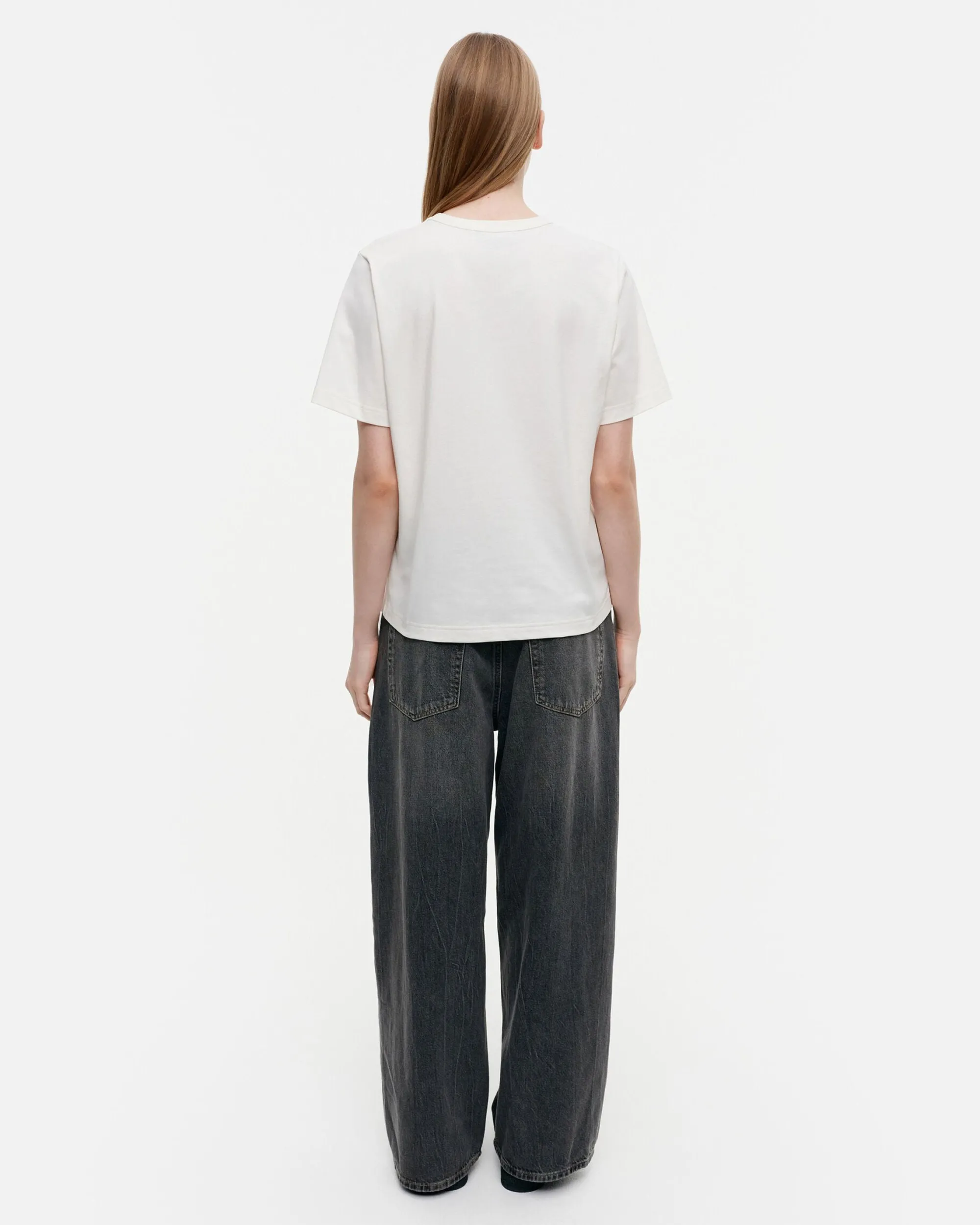 Luomupuuvillatrikoosta Valmistetussa Erna-T-Paidassa On Rento Istuvuus Ja Etupuolella Pieni Painettu Unikko-Kukka.Koko & Istuvuus