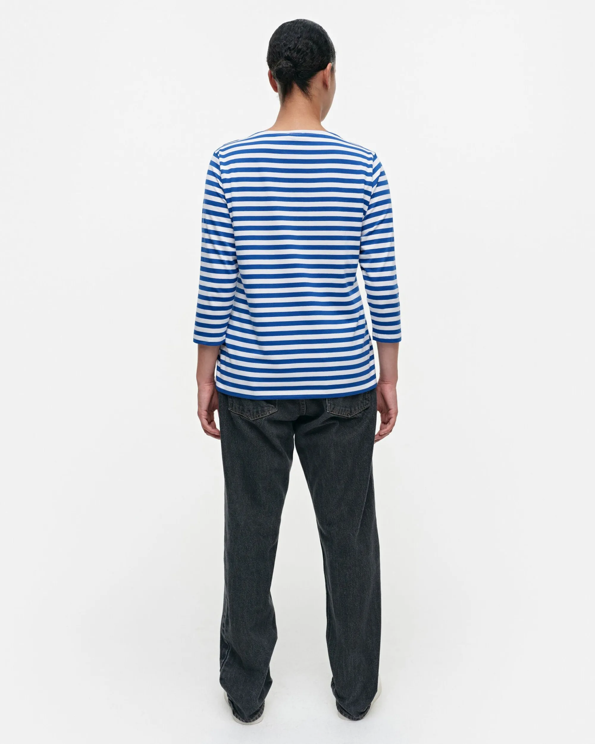 Puuvillatrikoosta Valmistetussa Ilma-Paidassa On Klassinen Tasaraita-Kuosi, Venepääntie Sekä Vajaamittaiset Hihat.