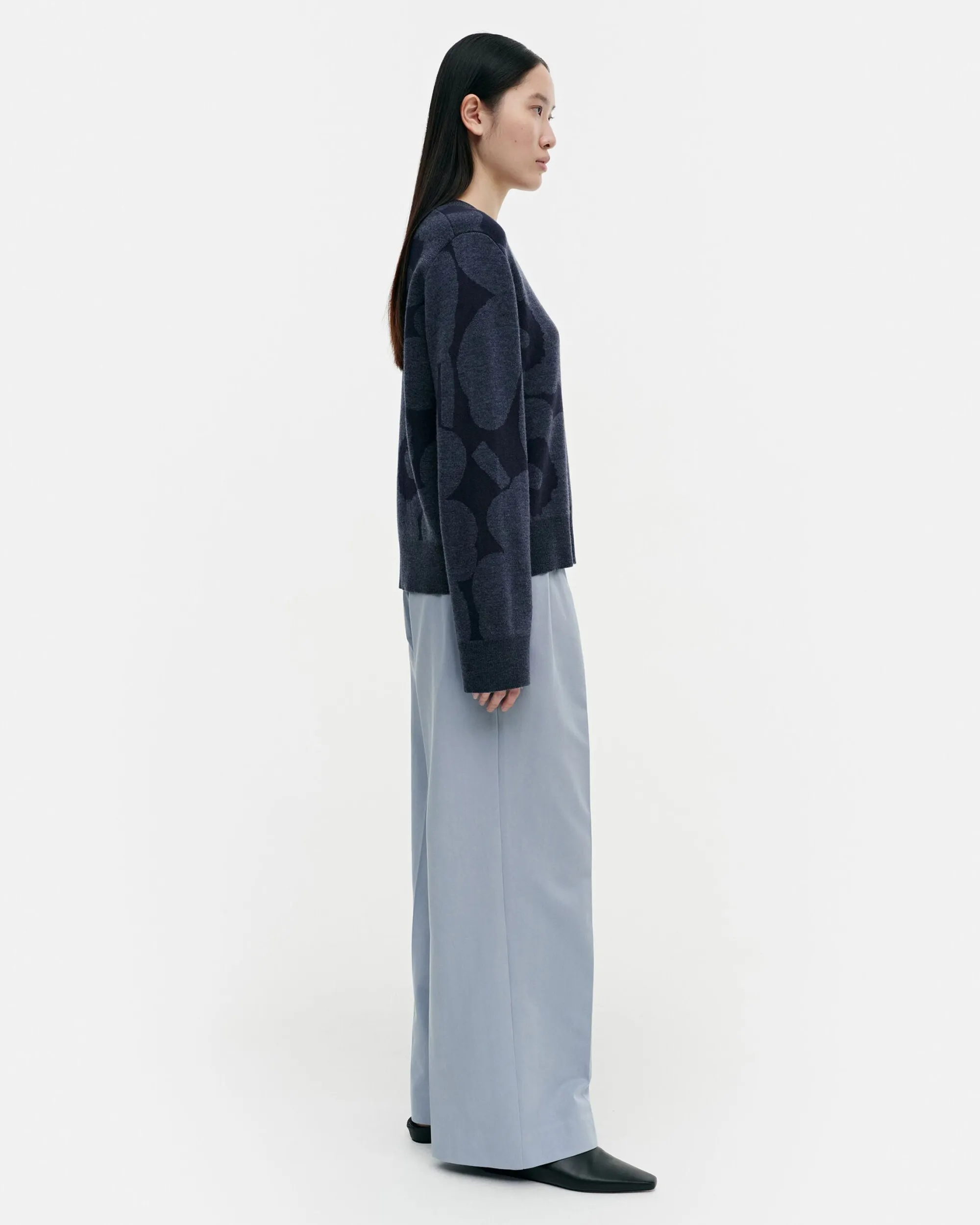 Villa-Puuvillasekoitteesta Valmistetussa Kalotti-Neulepuserossa On Rento Istuvuus Ja Suora Leikkaus. Neulepuserossa On Jacquard-Kudottu Unikko-Kuosi, Pyöreä Resoripääntie Ja Leveät Resorit Hihansuissa Sekä Helmassa.