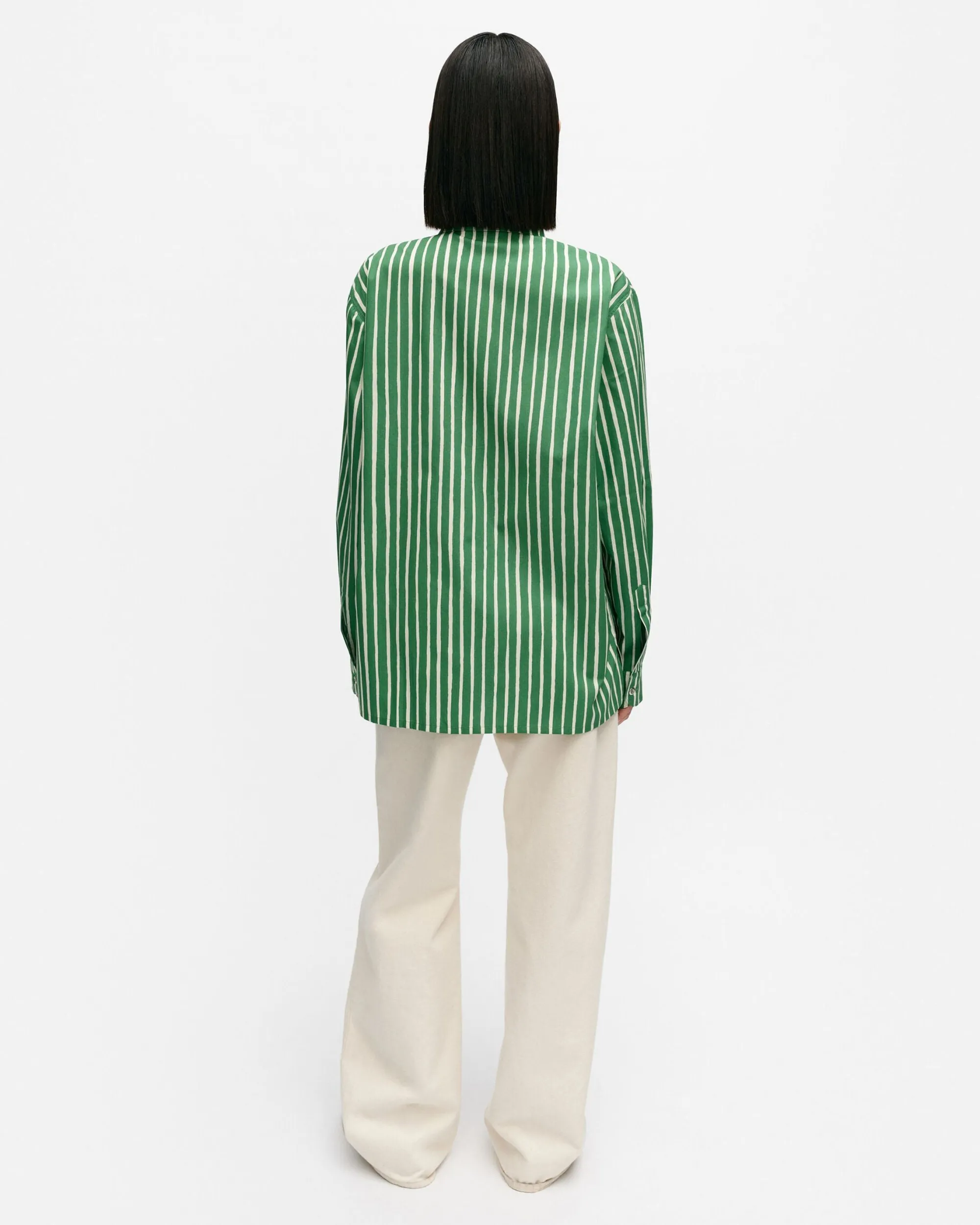 Heti Ensimmäisenä Marimekko-Vuotenaan 1953 Vuokko Eskolin-Nurmesniemi Loi Piccolon, Vapain Siveltimenvedoin Maalatun Raitakankaan. Kolme Vuotta Myöhemmin Kauppoihin Ja Katukuvaan Ilmestyi Marimekon Ensimmäinen Miestenvaate, Piccolo-Kankainen Paita Nimeltään Jokapoika.Koko & Istuvuus