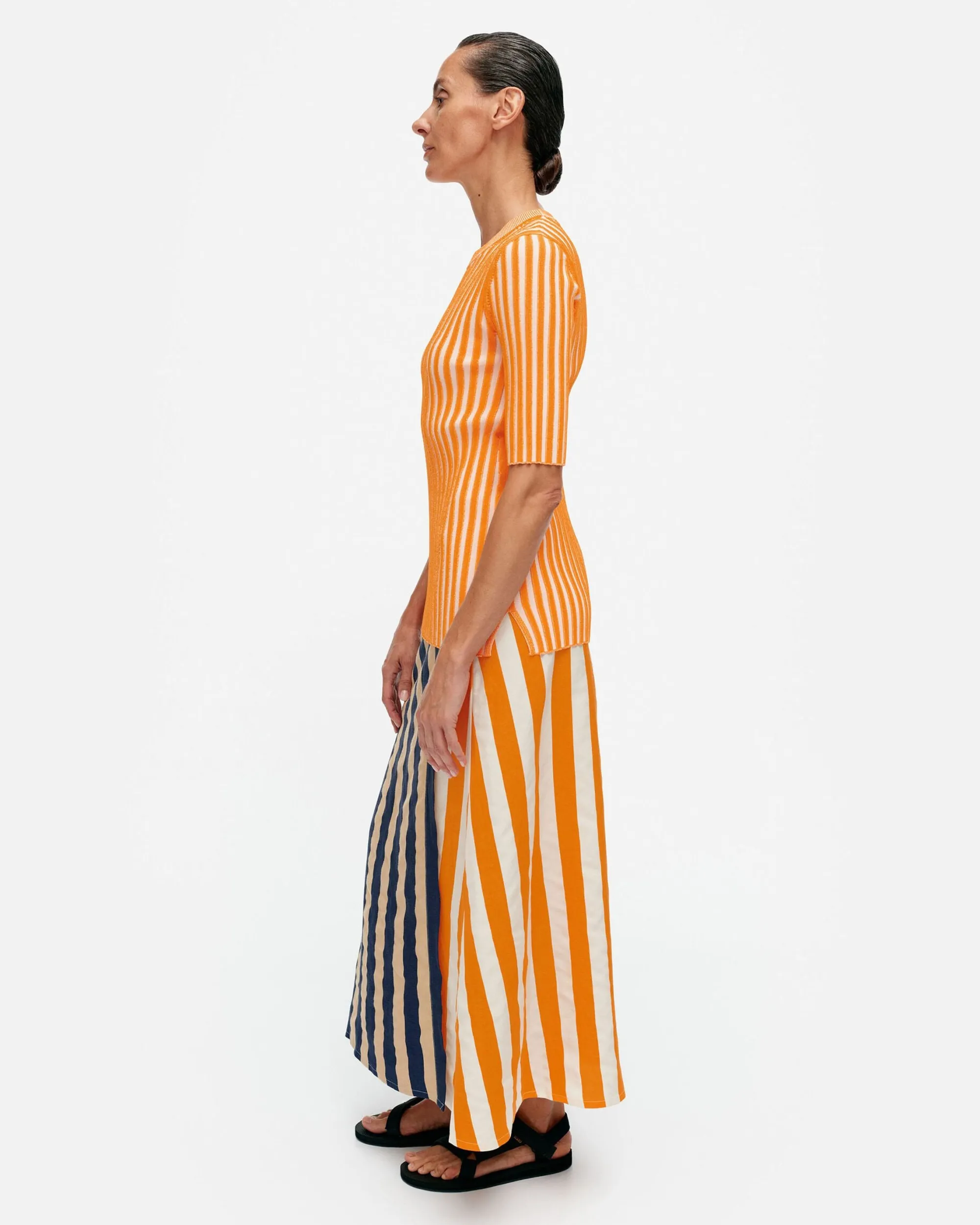 Raidat Ovat Aina Olleet Olennainen Osa Marimekon Kuviomaailmaa. Maija Isolan Suunnittelema Merirosvo Yhdistää Toisiinsa Kaksi Eriväristä Raitapalkkiparia.Koko & Istuvuus