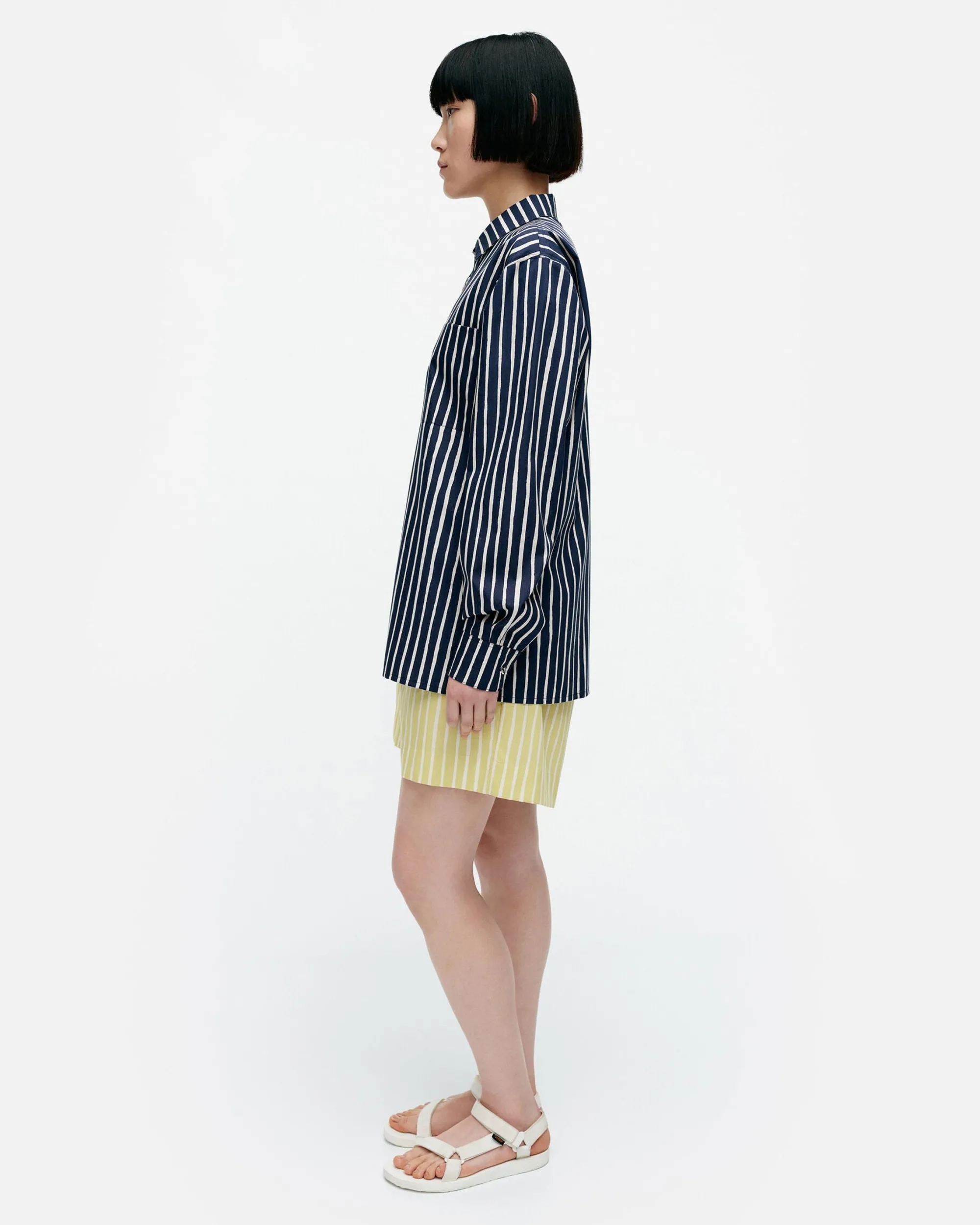 Jokapoika-Paita On Valmistettu Luomupuuvillasta Ja Siinä On Rento Istuvuus, Suora Leikkaus Sekä Helsingissä Painettu Piccolo-Kuosi. Paidassa On Kaulukset, Metallinappisuljenta Ja Rintatasku. Hihansuissa On Mansetit, Joissa On Metallinapit.