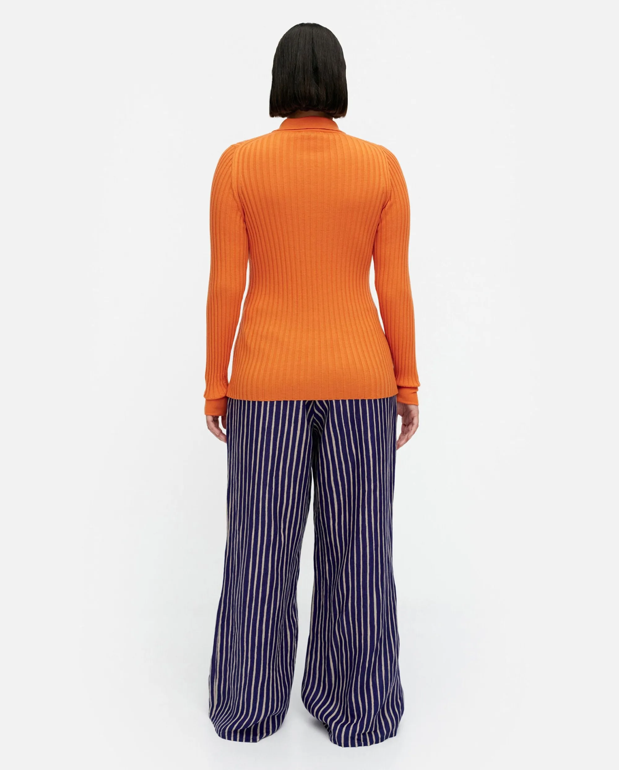 Iitu-Neulepuserossa On Vartalonmyötäinen Istuvuus, Suora Leikkaus Ja Se On Valmistettu Ohuesta Merinovillaribbistä, Joka On Sertifioitua. Neulepuserossa On Kaulukset, Lyhyt Nappilista Etupääntiellä Ja Leveät Resorit Hihansuissa.Koko & Istuvuus