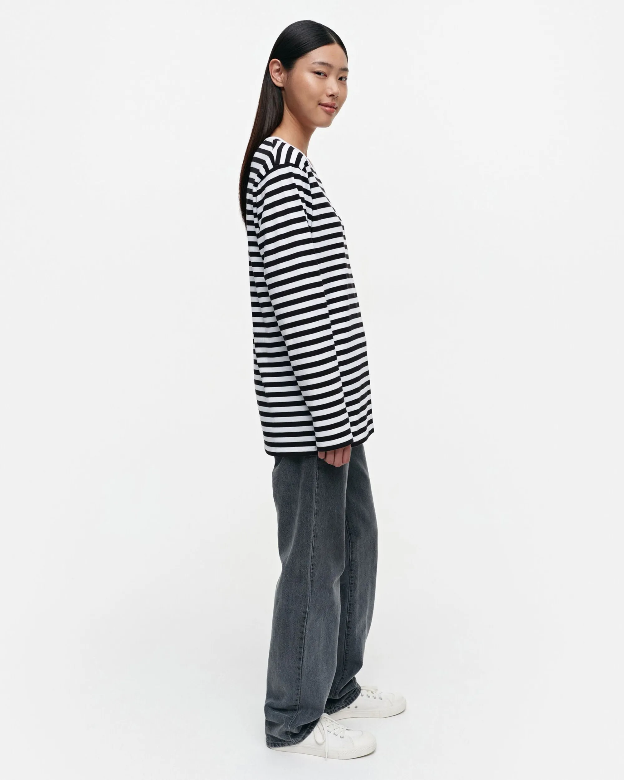 Pitkähiha-Paita On Valmistettu Klassisesta Tasaraita-Kuosisesta Puuvillatrikoosta. Paidassa On Resorikantti Pääntiessä Ja Suora Leikkaus. Paita On Unisex-Mallinen Ja -Kokoinen.