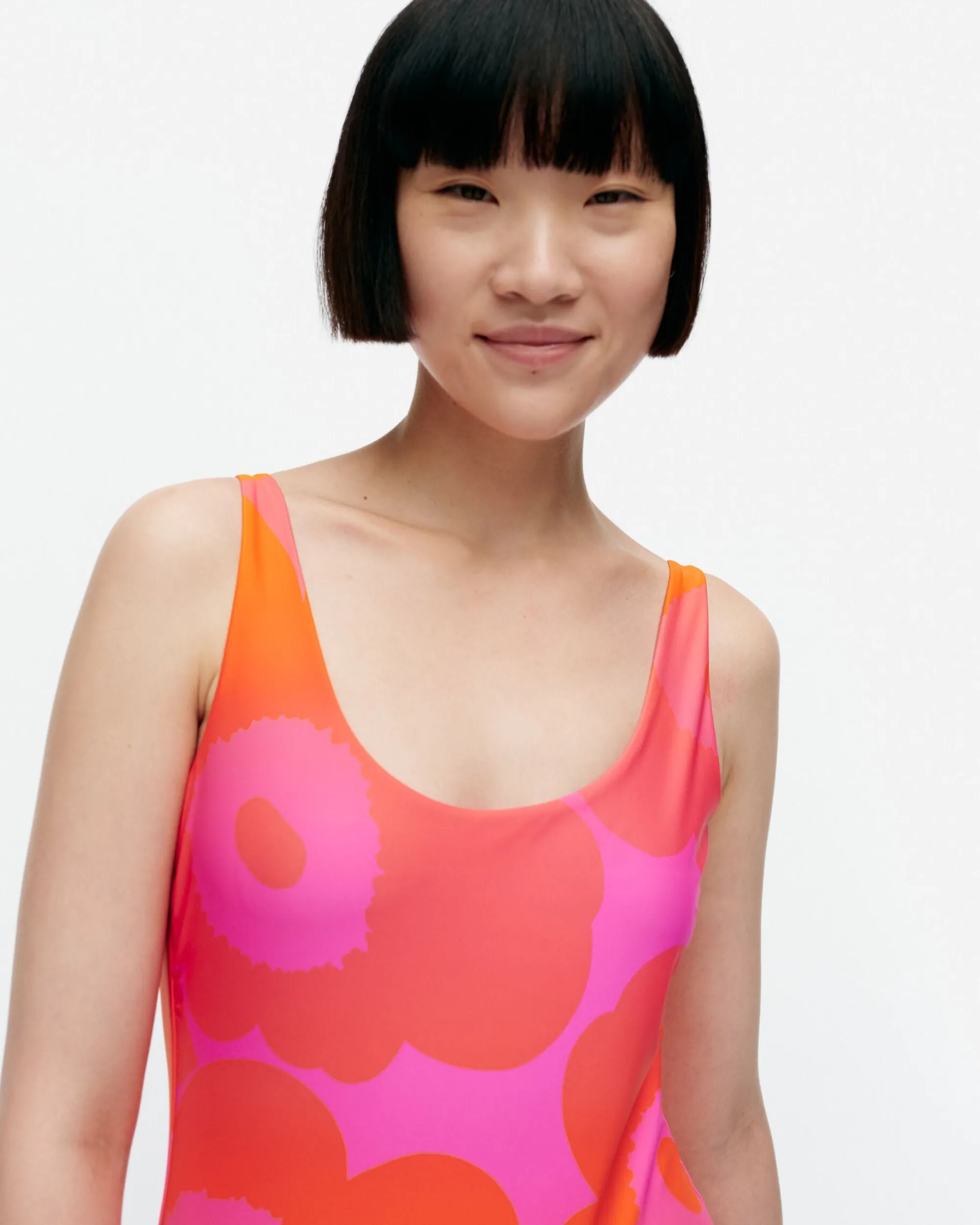 Agnetha-Uimapuvussa On Liukuvärjätty Unikko-Kuosi, Jossa Värit Vaihtuvat Oranssista Vaaleanpunaiseen. Uimapuku On Kokonaan Vuoritettu Ja Siinä On Säädettävät Olkaimet Sekä Avonainen Selkä. Materiaalilla On Upf 50+ -Luokitus.